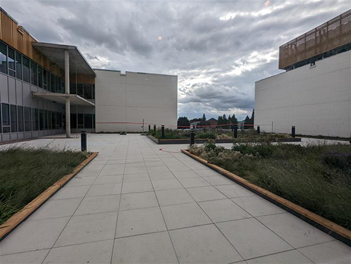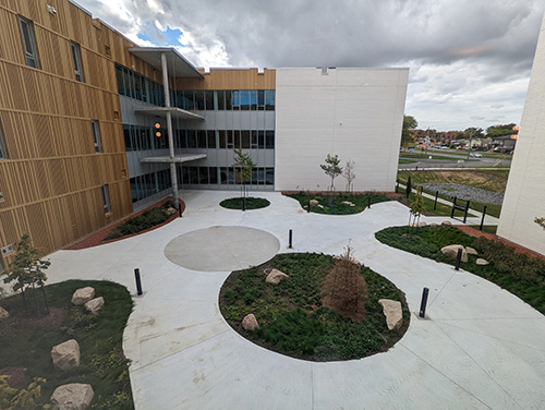L’aménagement extérieur favorise la biodiversité et comprend des zones ombragées, des jardins accessibles, des terrasses sur les toits de maisonnées, ainsi que des espaces propices à la détente et aux rencontres entre résidents, familles et employés.